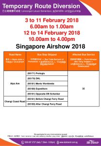 • 2017 (24 Apr): Amended to ply Tanah Merah Coast Road and Aviation Park Rd with the partial closure of Changi Coast Road