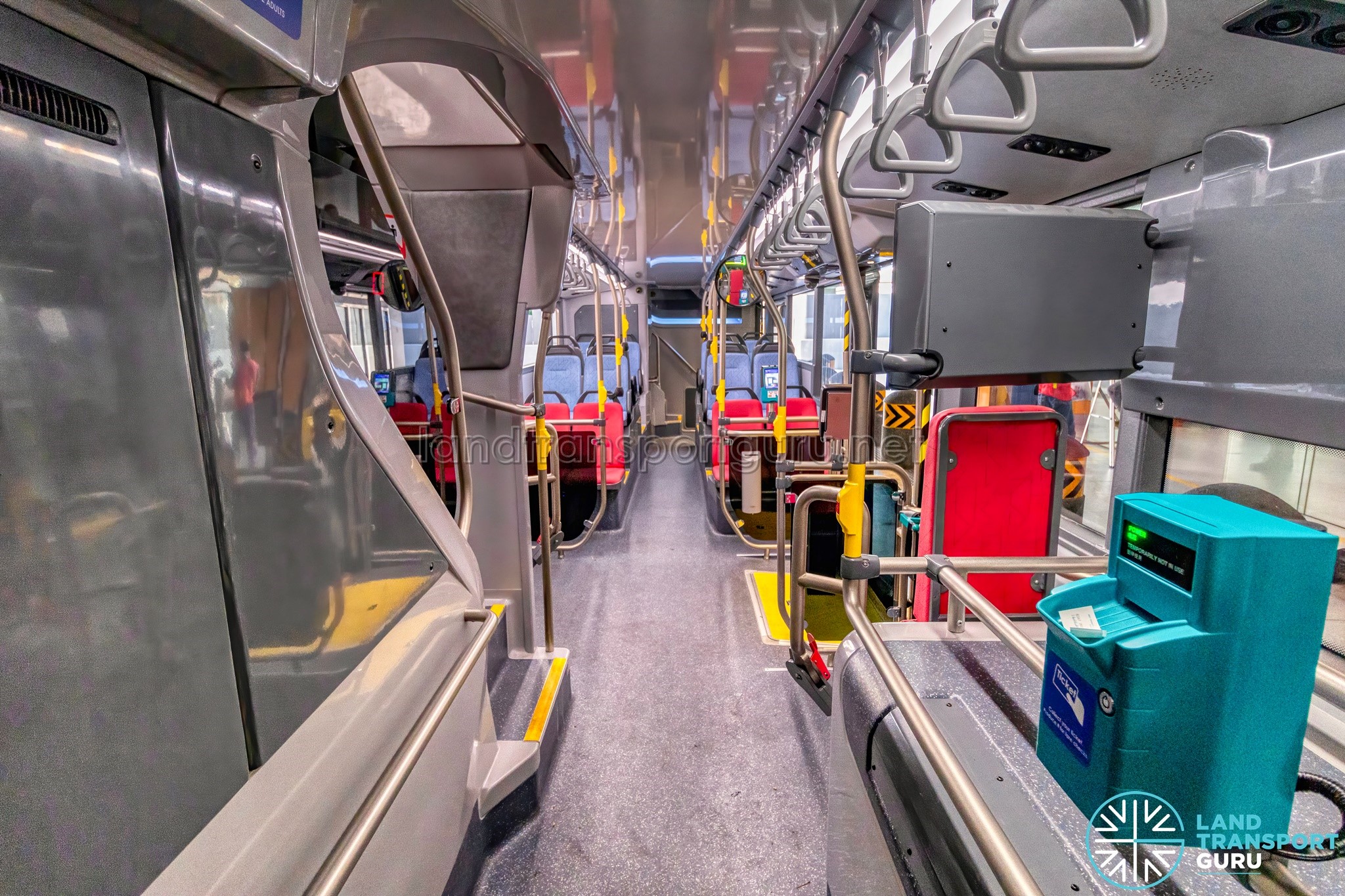 Wheelchair accessibility is offered via a manual wheelchair ramp installed at the middle door. LTA specifications mandate the provision of two wheelchair bays on new buses, in line with the needs of an ageing population and improved accessibility for passengers with prams.