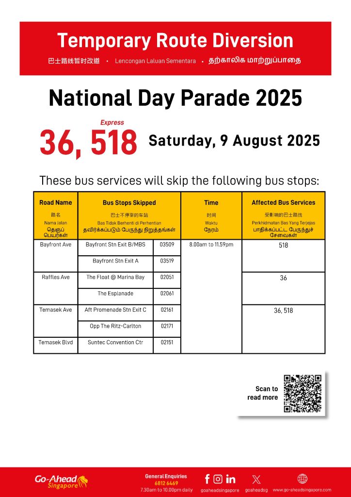 Go-Ahead Singapore Temporary Route Diversion Poster for NDP 2025