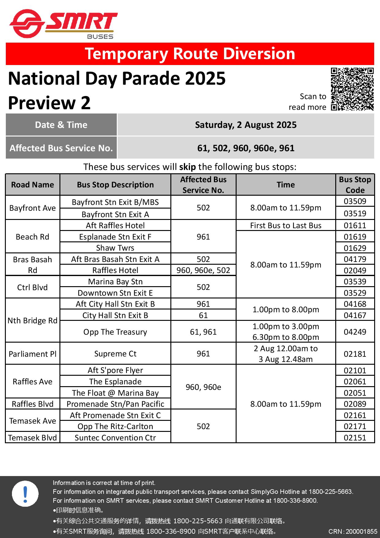 SMRT Buses Temporary Route Diversion Poster for NDP 2025 Preview 2 SMRT Buses Temporary Route Diversion Poster for NDP 2025 Preview 2 SMRT Buses Temporary Route Diversion Poster for NDP 2025 Preview 2
