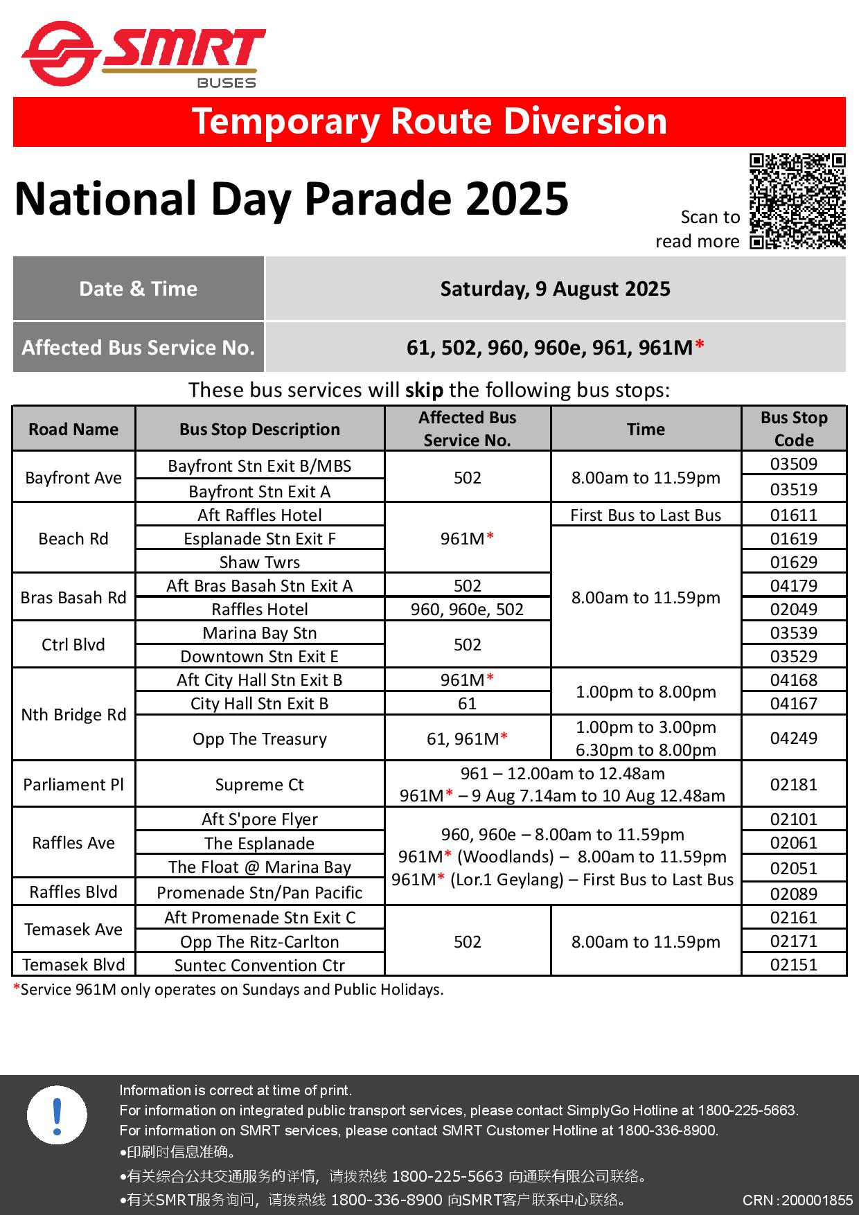 SMRT Buses Temporary Route Diversion Poster for NDP 2025 SMRT Buses Temporary Route Diversion Poster for NDP 2025 SMRT Buses Temporary Route Diversion Poster for NDP 2025