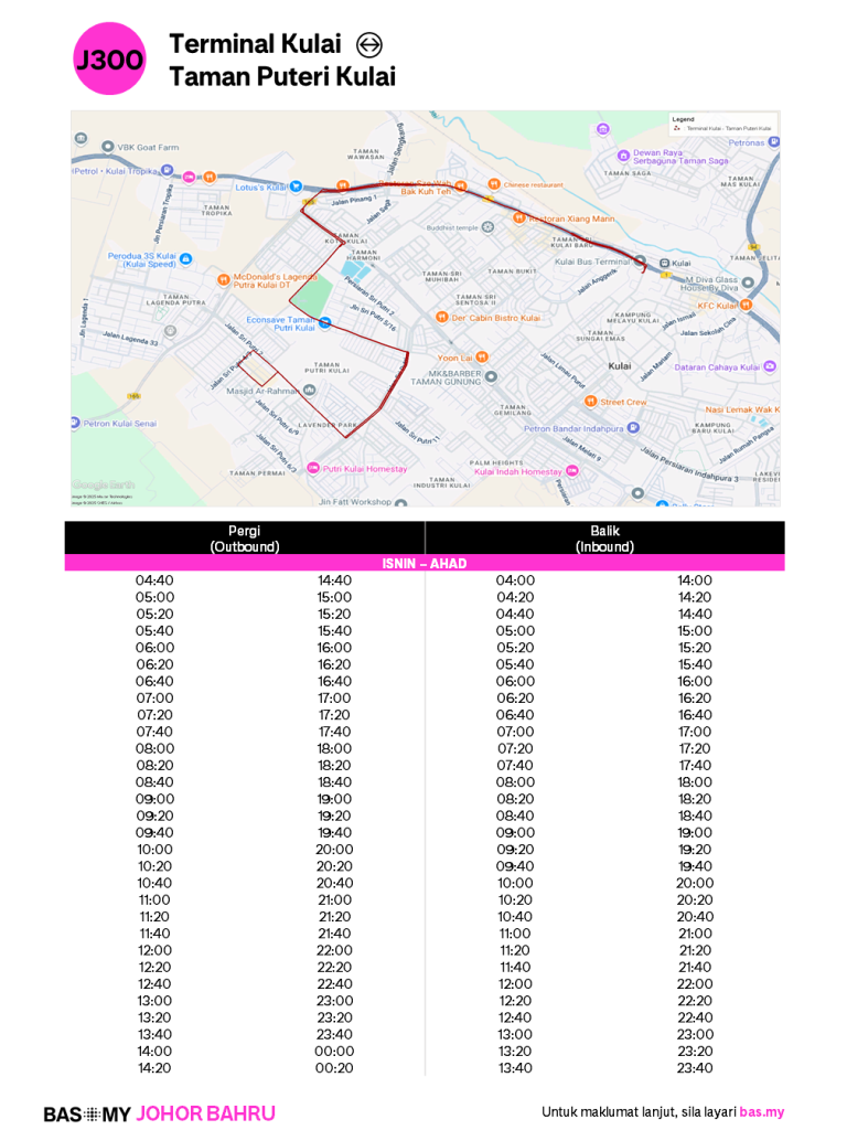 BAS.MY Johor Bahru J300 Route Map (Oct 2025)