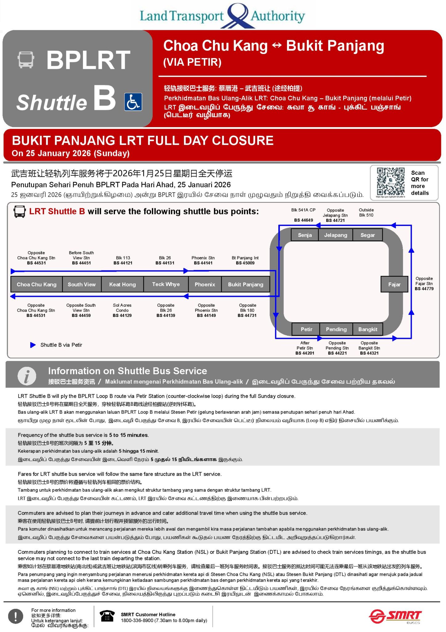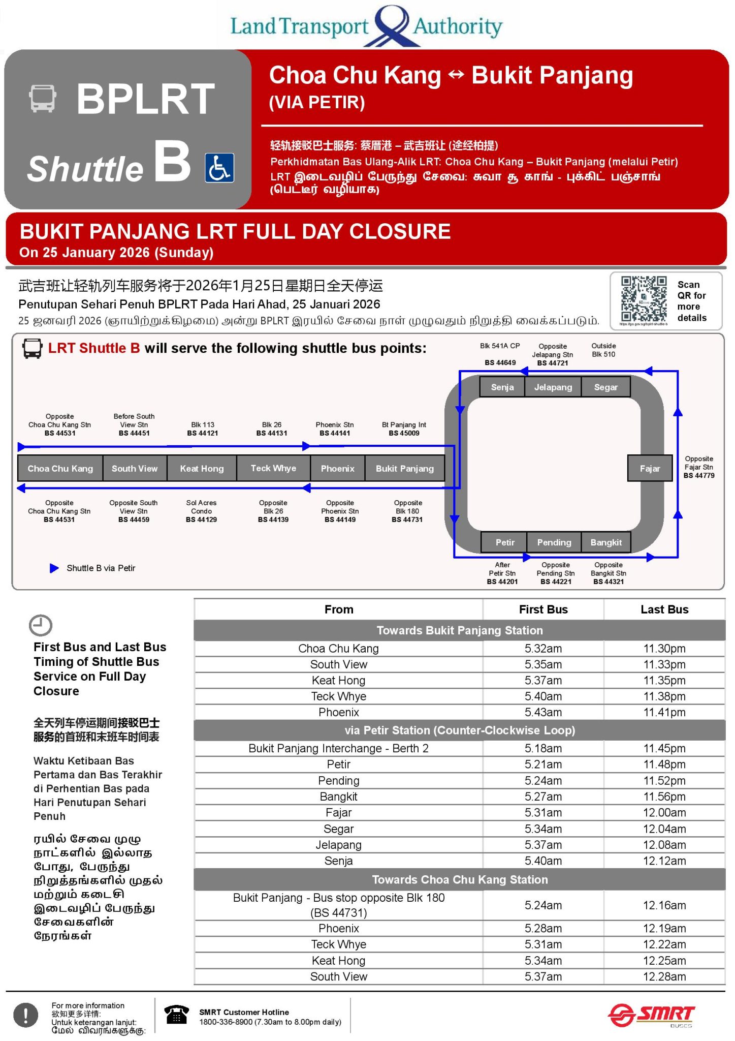 - Service Announcement – Operation of Shuttle Bus Service for Bukit Panjang LRT Full-Day Closure – SMRT
