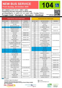 However, the updated poster released by the Land Transport Authority on 12 October 2025 showed that Service 104 will serve bus stop 65669 – Northshore Pr Sch at launch.