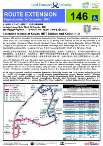 Service 146 will be extended to loop at Kovan MRT & Kovan Hub from 14 Dec 2025.