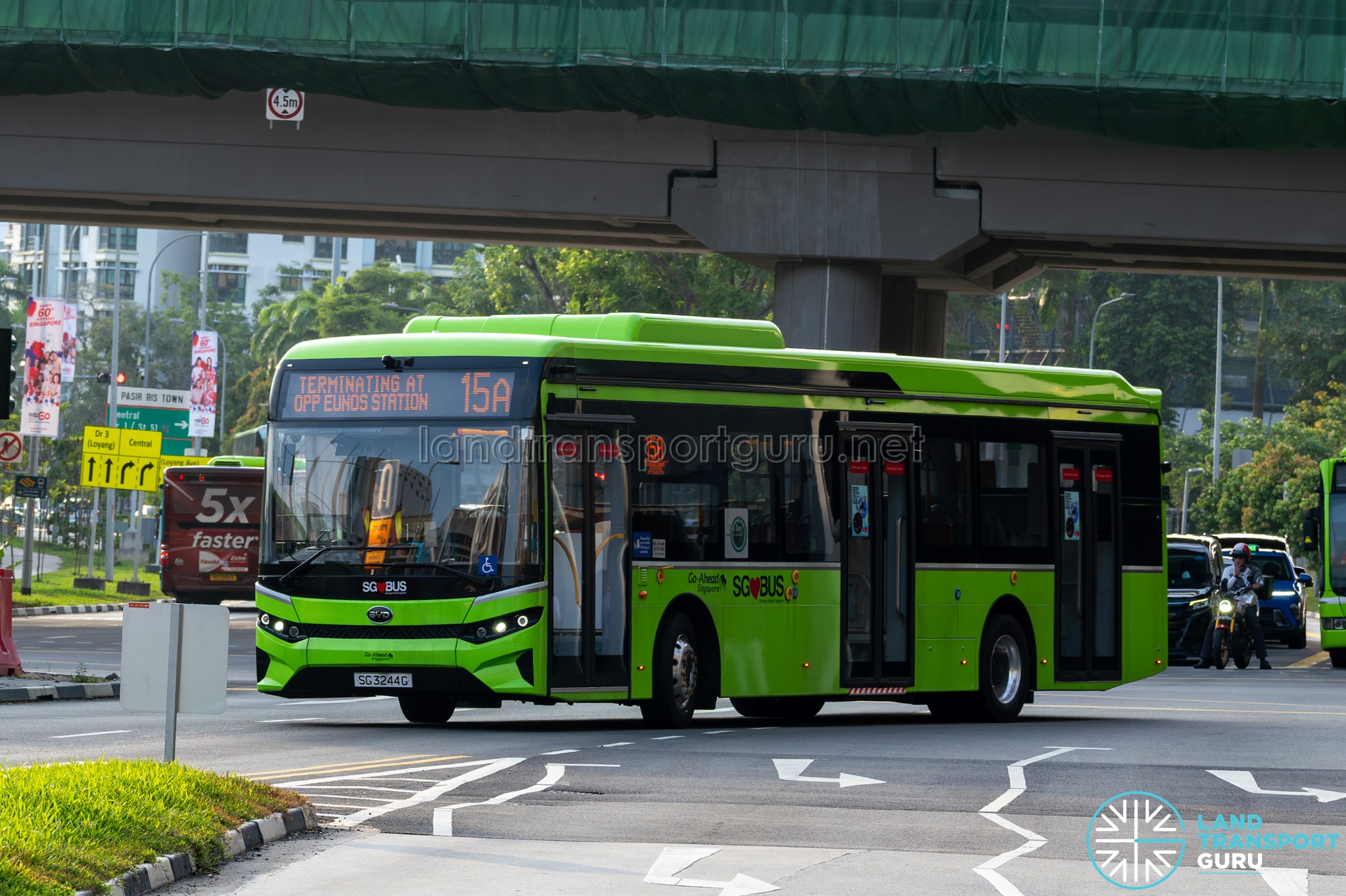 Short Trip Service 15A is a trunk service operating from Pasir Ris Bus Interchange and ends at Jalan Eunos (Opp Eunos Stn).