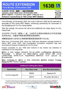 Service 163B was extended to Lentor MRT Station from 24 Nov 2025.