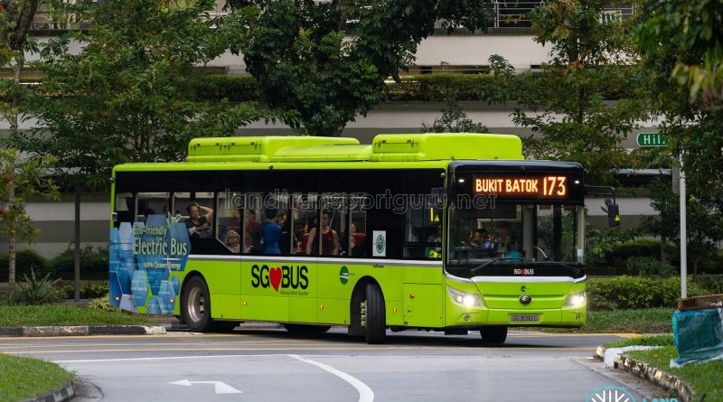 Service 173 is a residential trunk route connecting the housing estates of Bukit Batok, Clementi, and the private estates of Hillview, Hume, Upper Bukit Timah, Toh Tuck and Lorong Kismis to Bukit Batok and Clementi Town Centres. Much of its route serves residents of private estates and condominiums along its route As the route covers low-density estates, demand is relatively low during most parts of the day, but particularly high during the peak hours.