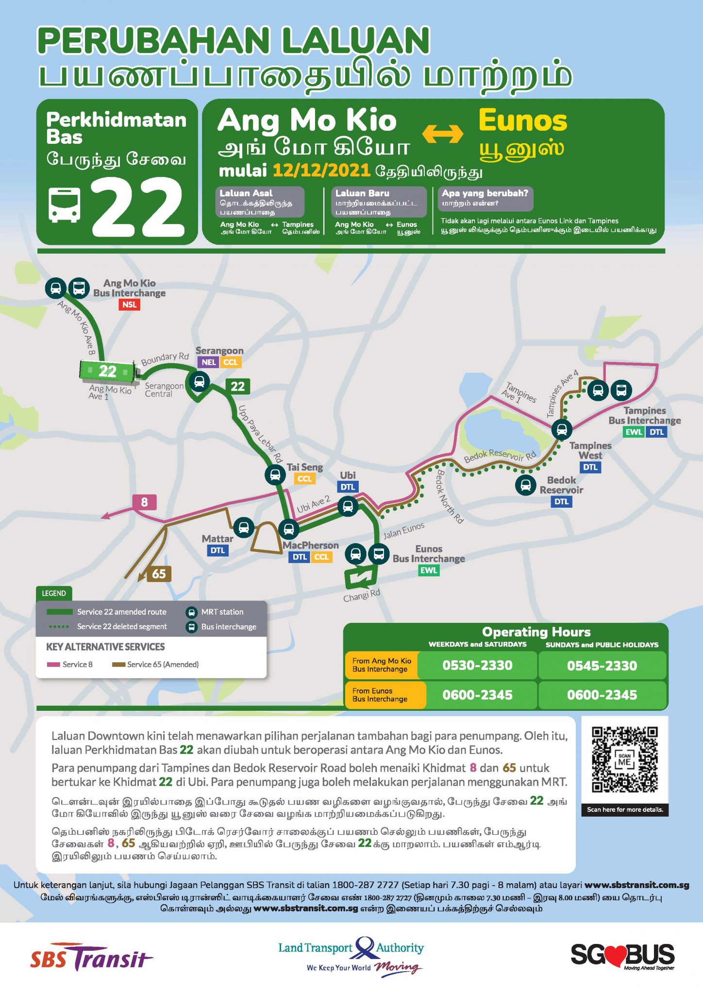Service 22 is now under Serangoon-Eunos bus package since the route amendment on 12 December 2021.