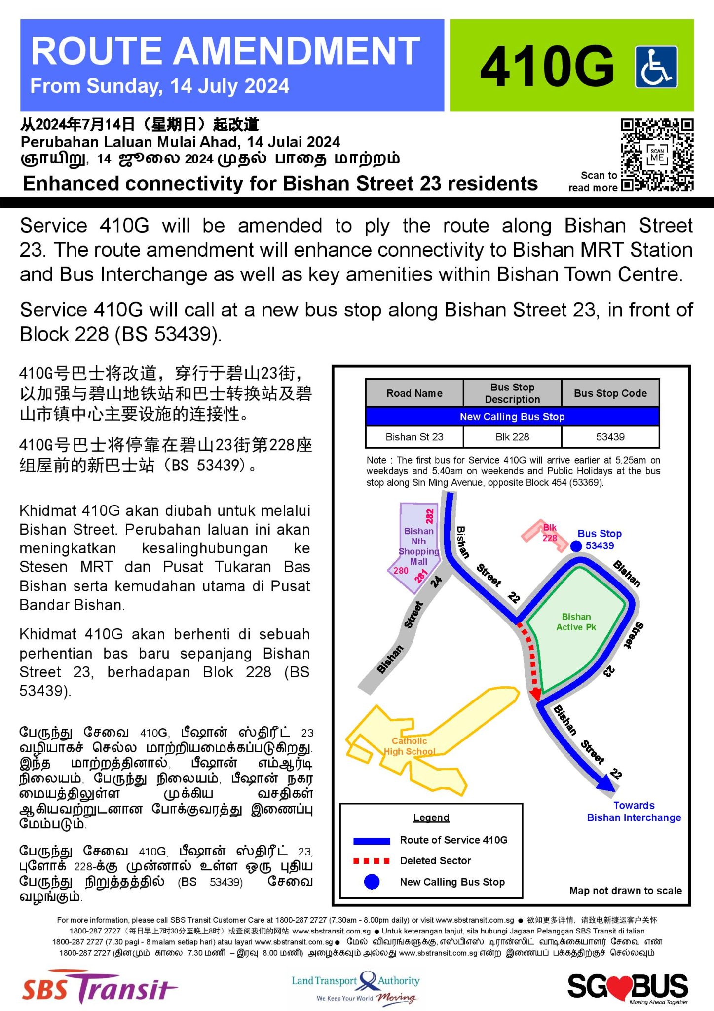 - 2024 (14 Jul): Amended to ply Bishan St 23; Daily first bus timing from Sin Ming Rd (Opp Blk 454) brought forward by 5 mins