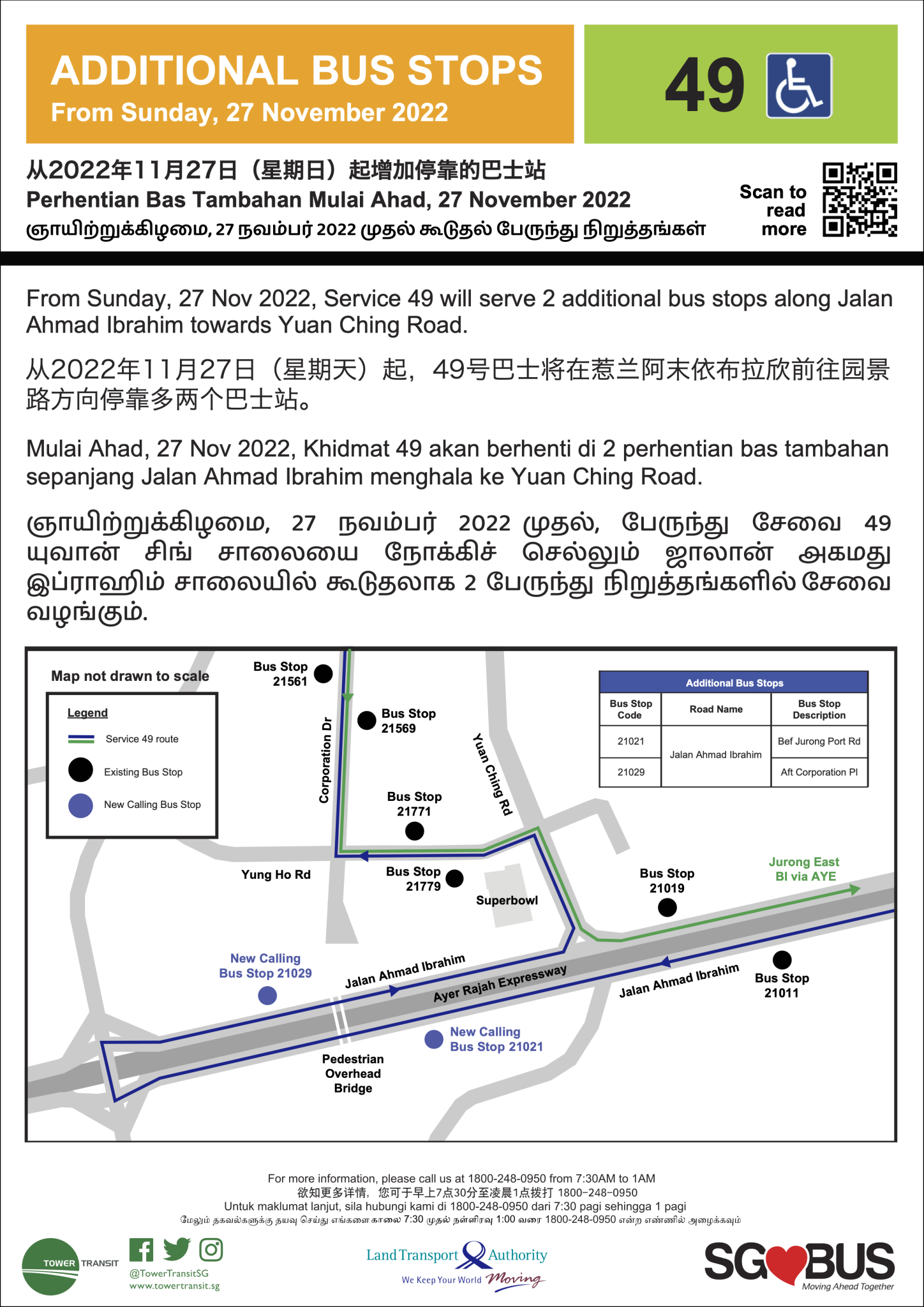 In late October 2015, the Service 49 Route Extension to Jurong East poster was uploaded to “The Yuhua Family” Facebook Page. The poster indicated that the extension was to take place on 15 Nov 2015. However, LTA had delayed the extension to 22 Nov 2015, one week later than the planned extension. The poster was subsequently removed from the Facebook Page.