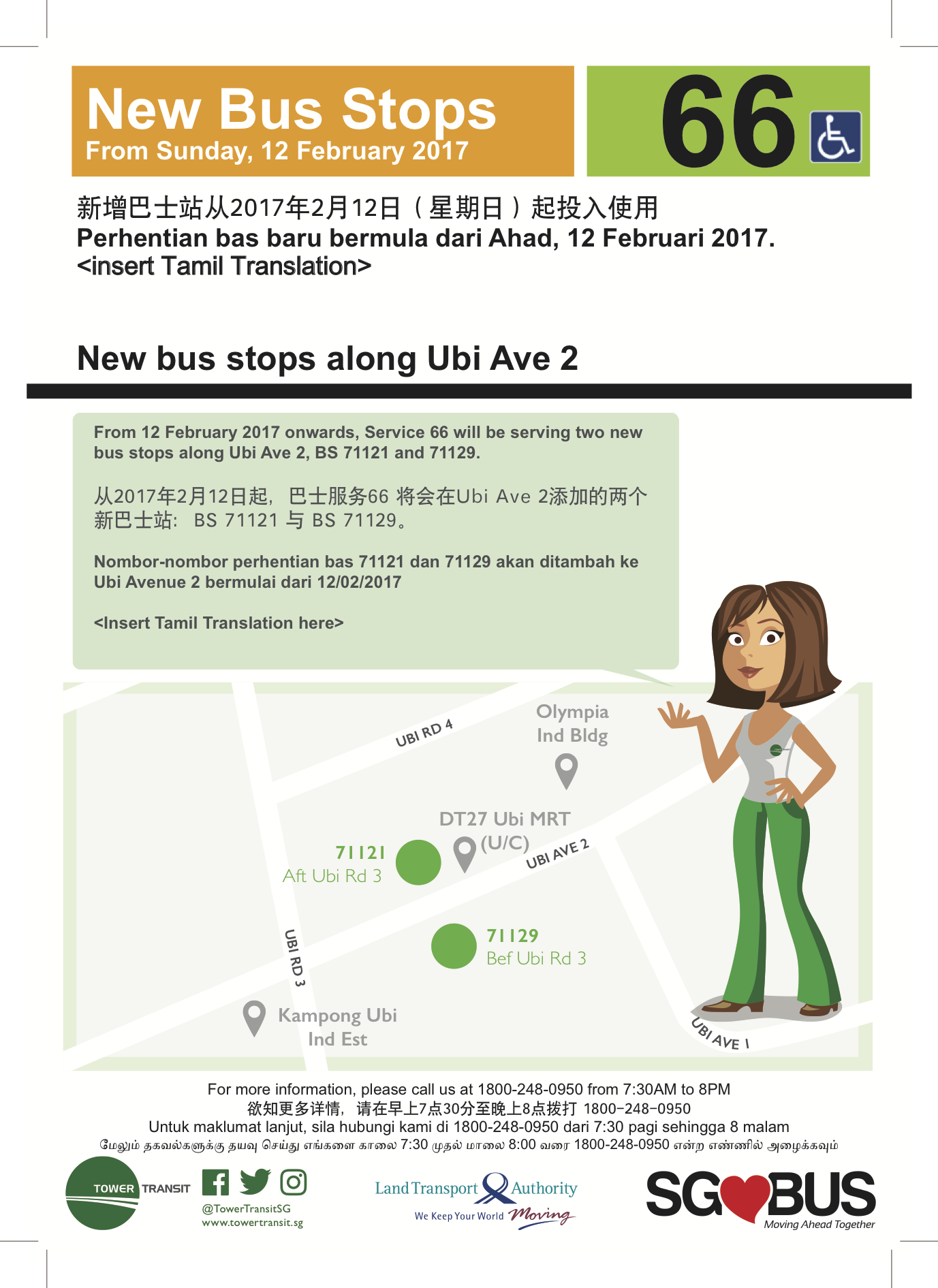 - 2012 (26 Mar): Designated wheelchair-accessible bus service (WAB)