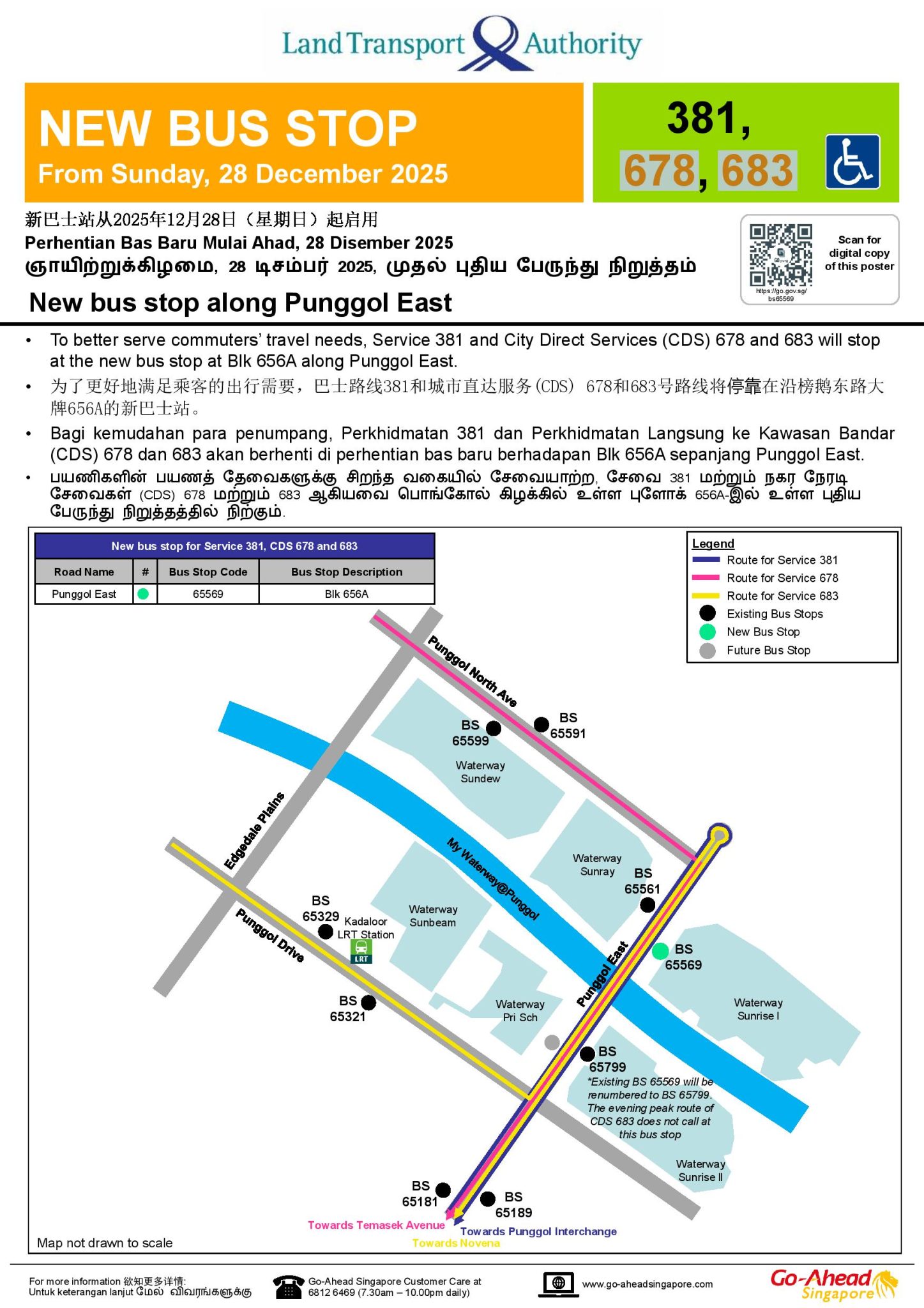 - 2025 (28 Dec): Serves a new bus stop outside Blk 656A along Punggol East