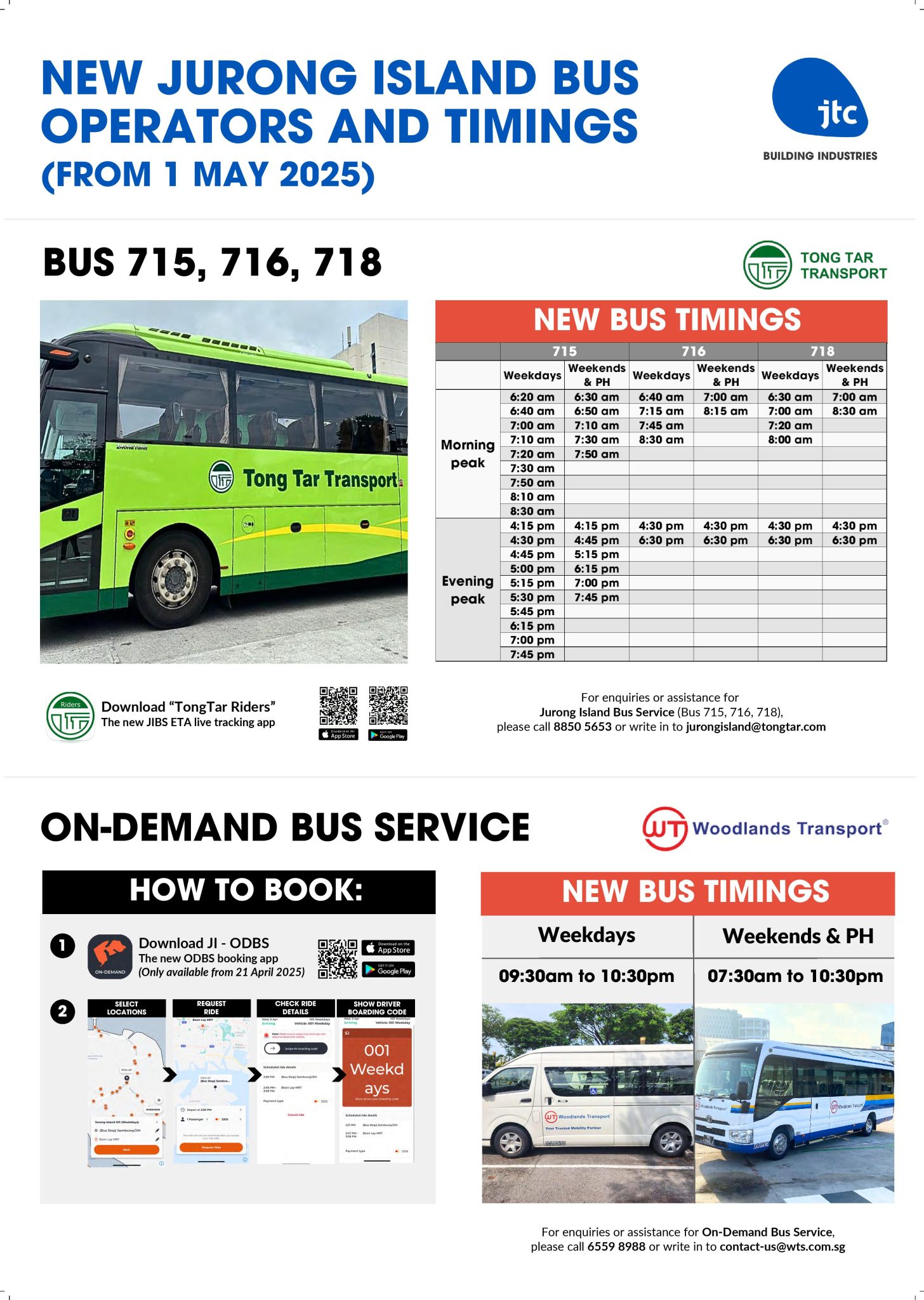 | Use the Jurong Island On Demand Bus Service outside of operating hours (09:30 – 22:30 on Weekdays & 07:30 – 22:30 on Weekends / Public Holidays) |