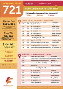 | Departure Times from Tengah Dr | 07:30 & 08:00 (Weekdays, except Public Holidays) |
