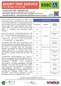 Service 856C supplements weekday morning peak demand from Admiralty Road and Woodlands North MRT Station to industries along Admiralty Road West.