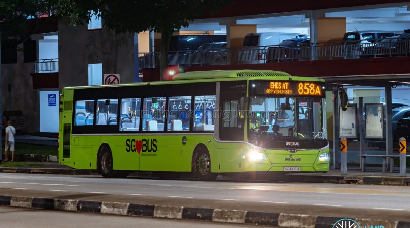 The route operates from Woodlands Bus Interchange and ends at Yishun Avenue 2 (Opp Yishun Stn), operating daily, after the last bus of Service 858 has departed.