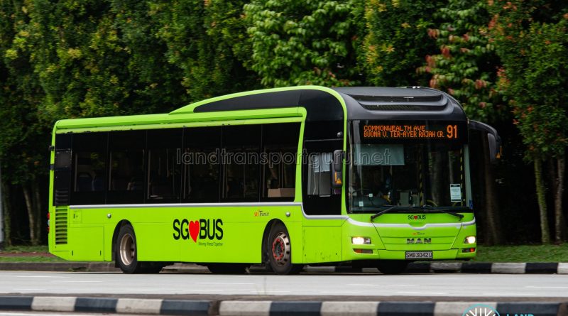 Service 91 serves the Ayer Rajah Industrial Estate with bus connections to one-north and Buona Vista MRT stations.