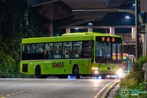 Originally introduced Express 521 in September 1999 with brand-new Hino HS3KRKK ‘smiley’ buses, its launch coincided with the extension of the Electronic Road Pricing (ERP) scheme to outer ring roads, in an effort to encourage more commuters to opt for public transport. It charged discounted fares (normal air-con bus fares) during off-peak periods, and express fares during peak periods. Later in 2002, it was extended to Woodlands and downgraded to a regular trunk route, and renumbered as Service 963.