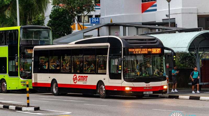 Service 983M does not start at Choa Chu Kang Int; it instead starts midway along Service 983’s route at Choa Chu Kang Ave 5. The service also terminates at a new bus stop along Teck Whye Crescent, used only for alighting activities.