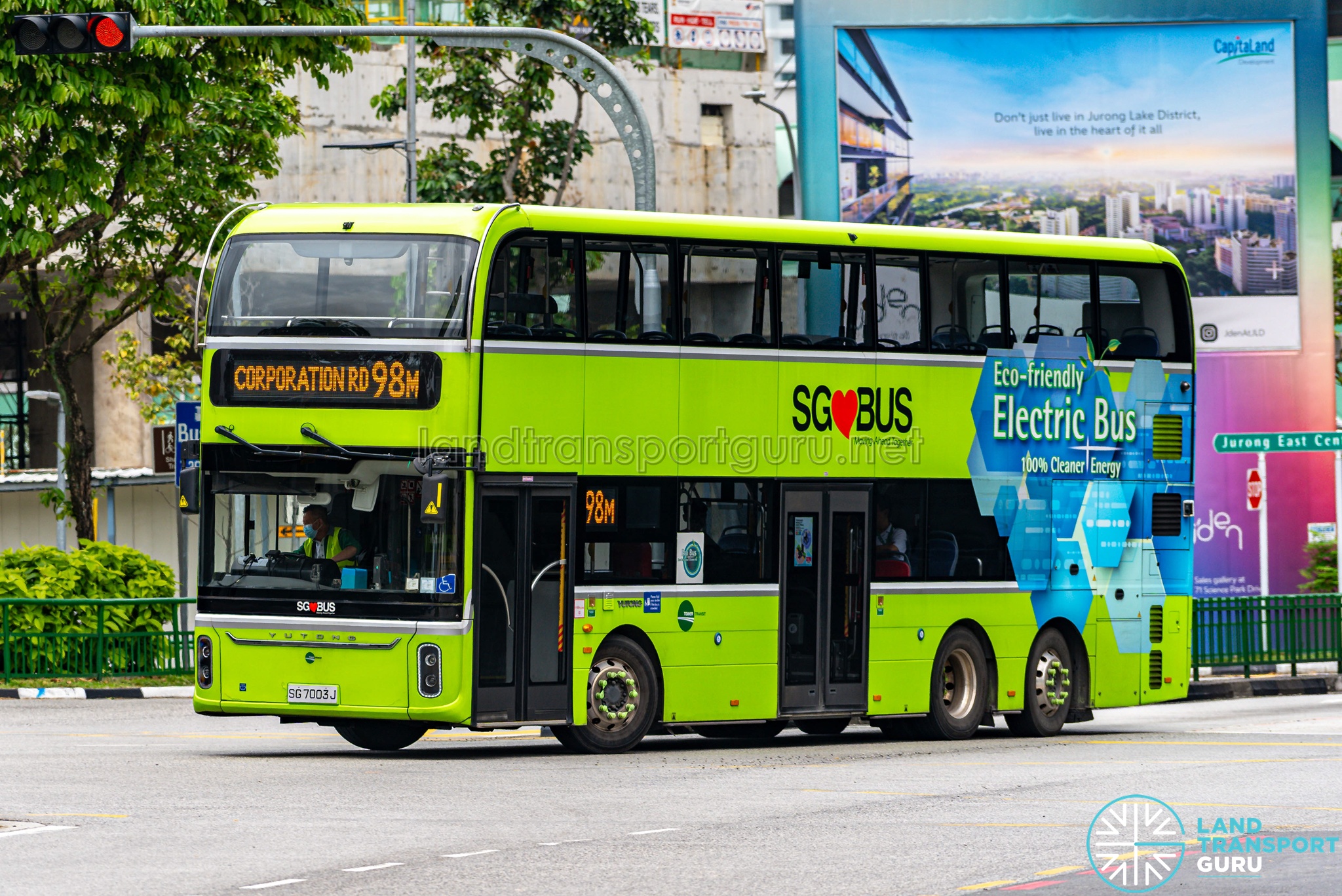 Tower Transit Bus Service 98M is a trunk route from Jurong East Bus Interchange and looping at Corporation Road, passing through Jurong East Avenue 1, Jurong West Avenue 1, Lakeside MRT and Corporation Drive.