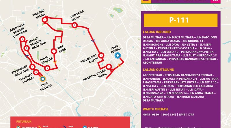 Read moreBas Muafakat Johor Bus Service P111 is a Bas Muafakat Johor (BMJ) bus route plying between Desa Mutiara and AEON Tebrau
