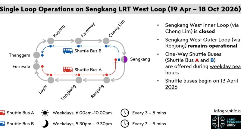 Read moreThe West Inner Loop of the Sengkang LRT Line will be closed from 19 April 2026 to 18 October 2026.