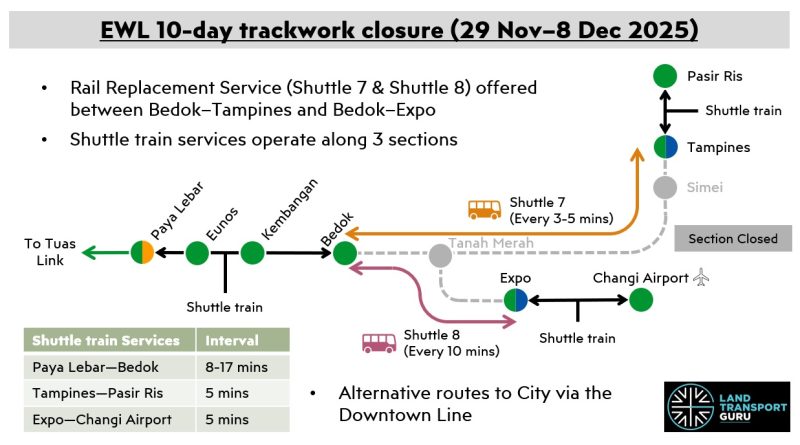 Read moreNo Train Service will be available on the East-West Line (EWL) between Bedok – Tampines & Tanah Merah – Expo