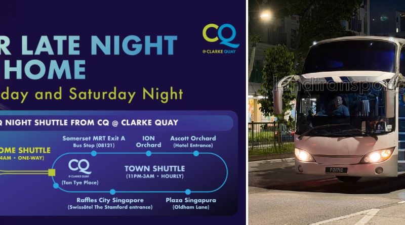 On 5 December 2025, the CQ Night Shuttle was launched, marking the reintroduction of night bus connectivity in Clarke Quay since the withdrawal of the NightRider and Nite Owl services in 2022, and brief stints offered by A&S Transit’s Night Bus Services (January–June 2023), and RushOwl’s on-demand NightOwl service (June–November 2024).
