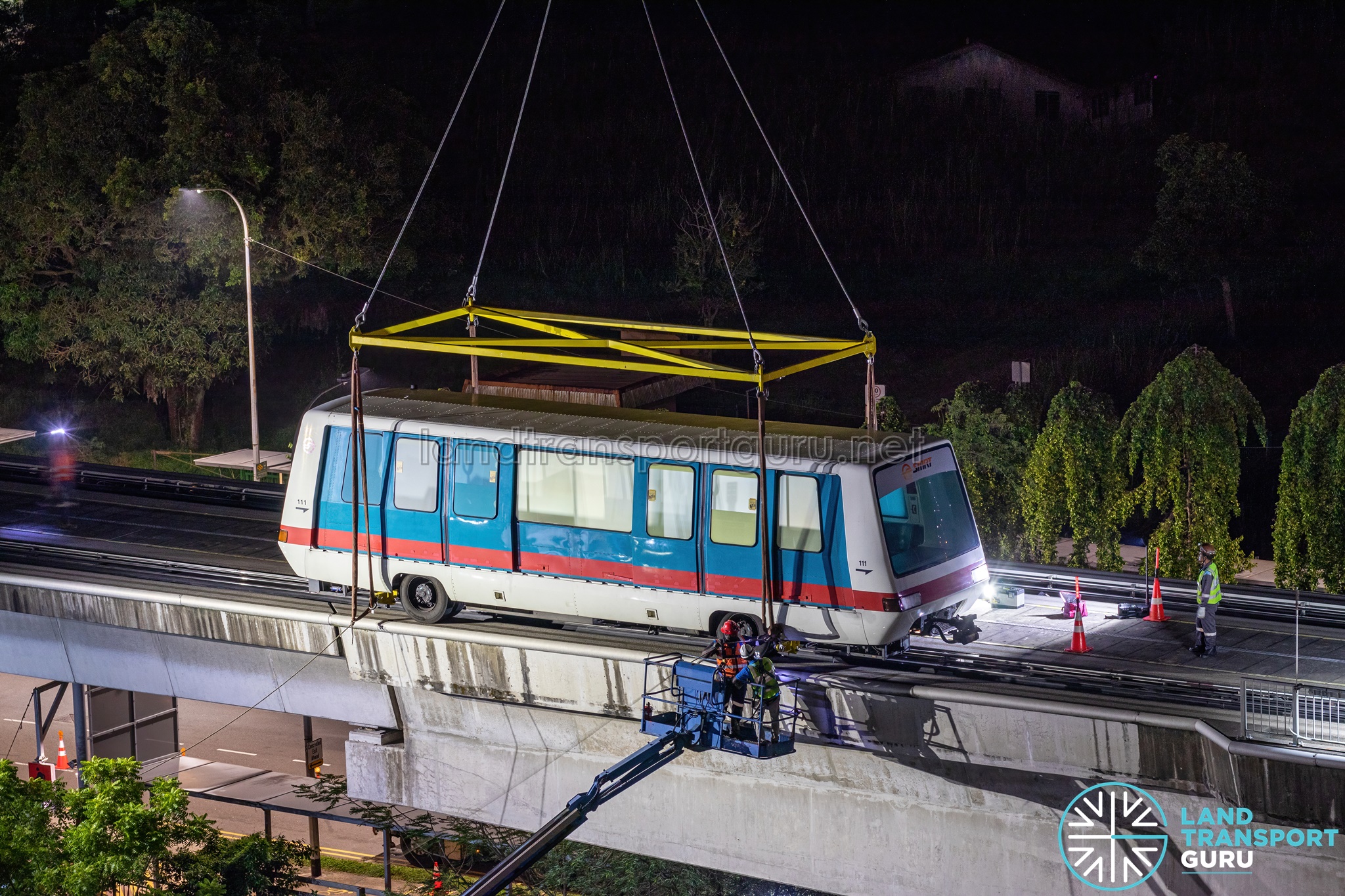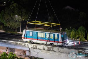 In the early hours of 26 November 2023, the first of 19 trains (car number 101) was lifted off the guideway and transferred to Alstom’s Contract 801B staging area located adjacent to Ten Mile Junction Depot.