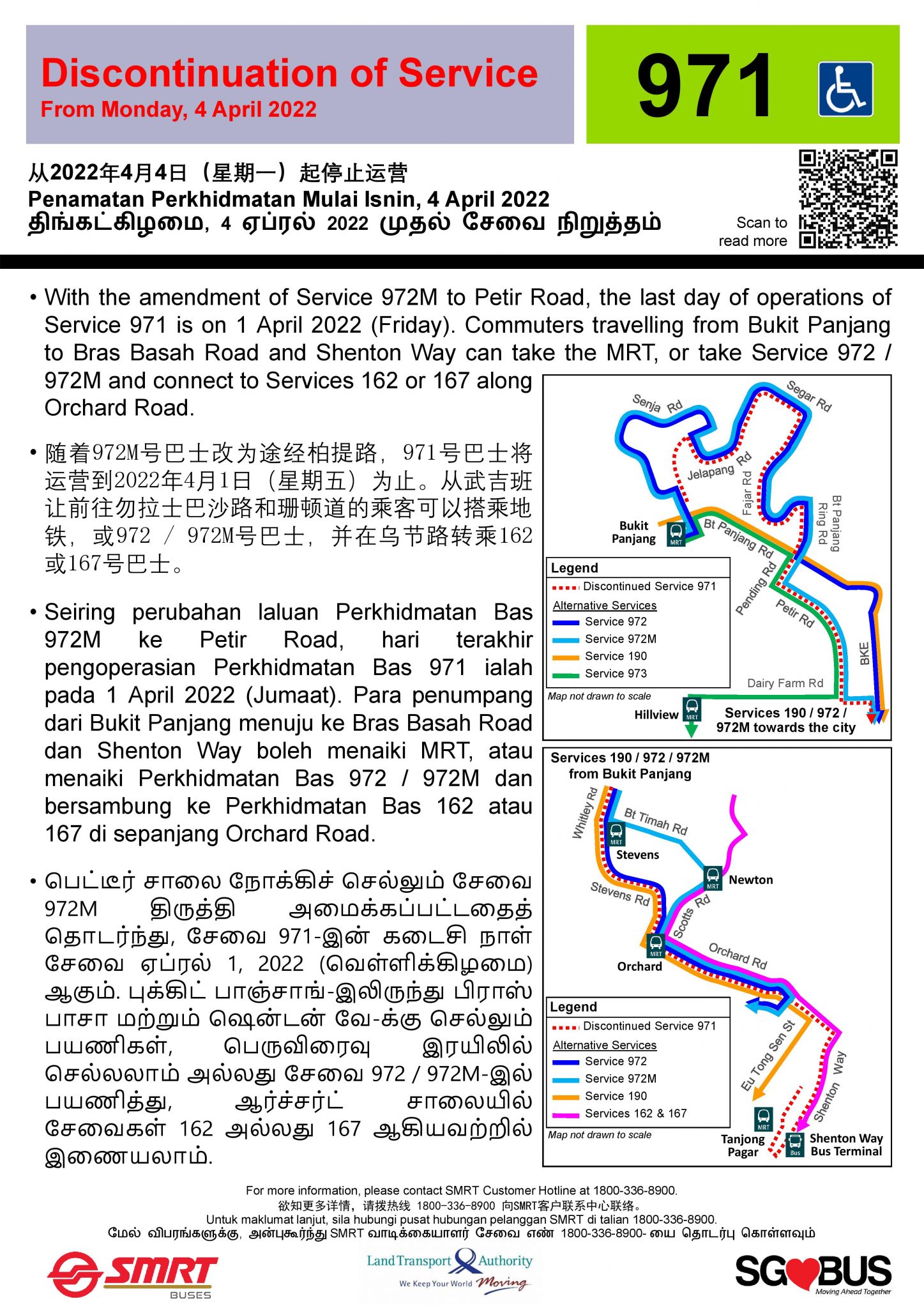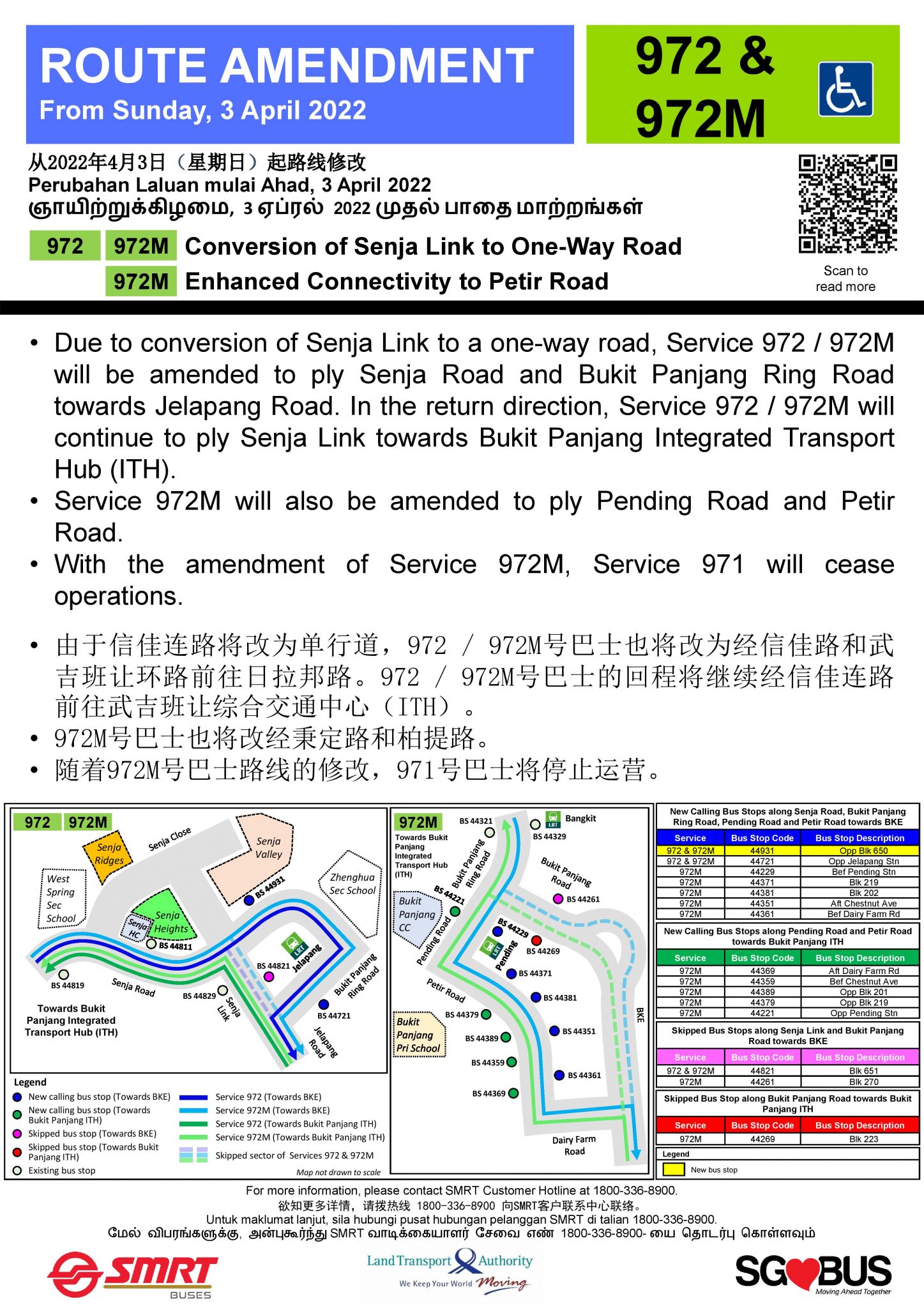 - 2022 (14 Mar): Discontinuation of Service 971 and further amendment to Service 972M to serve Pending Rd and Petir Rd published.