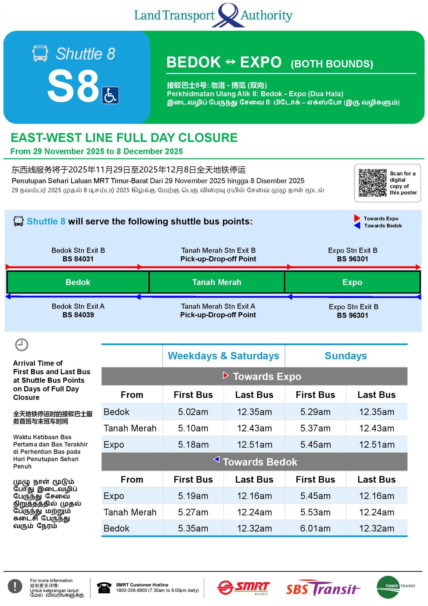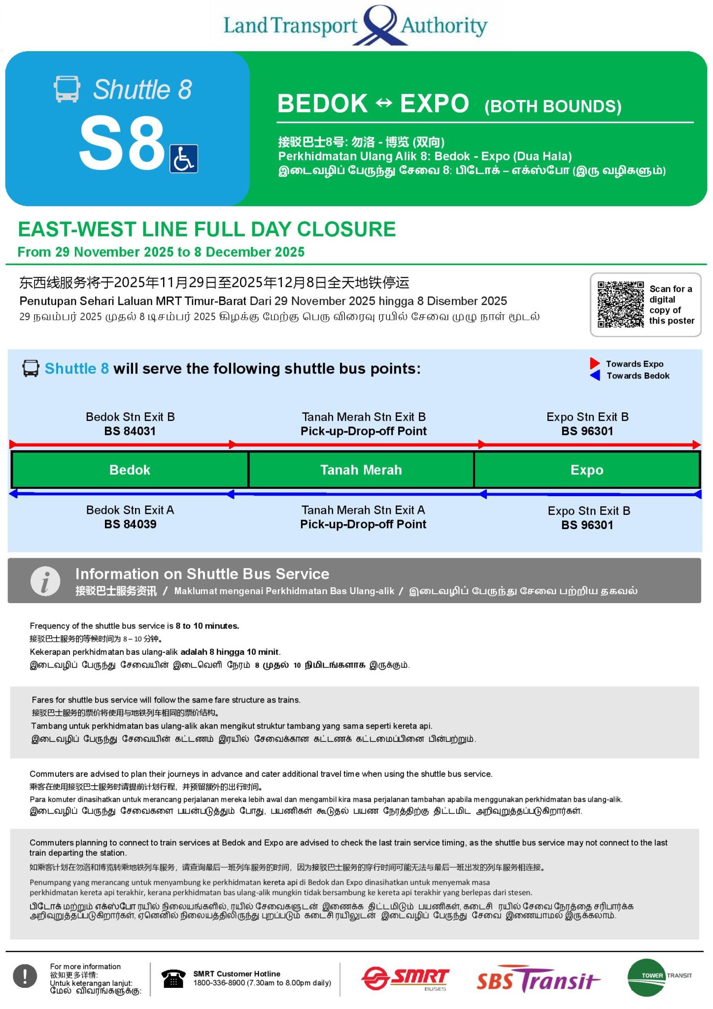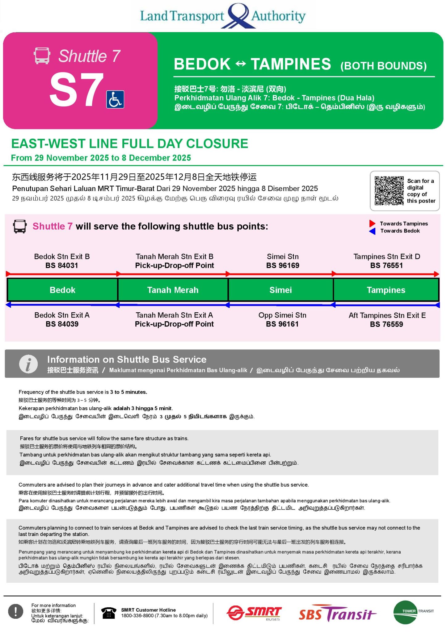 - Service Announcement – Operations of Shuttle 7 and 8 during Train Service Adjustments along East-West Line – SMRT Corporation [Accessed 25 Nov 2025]