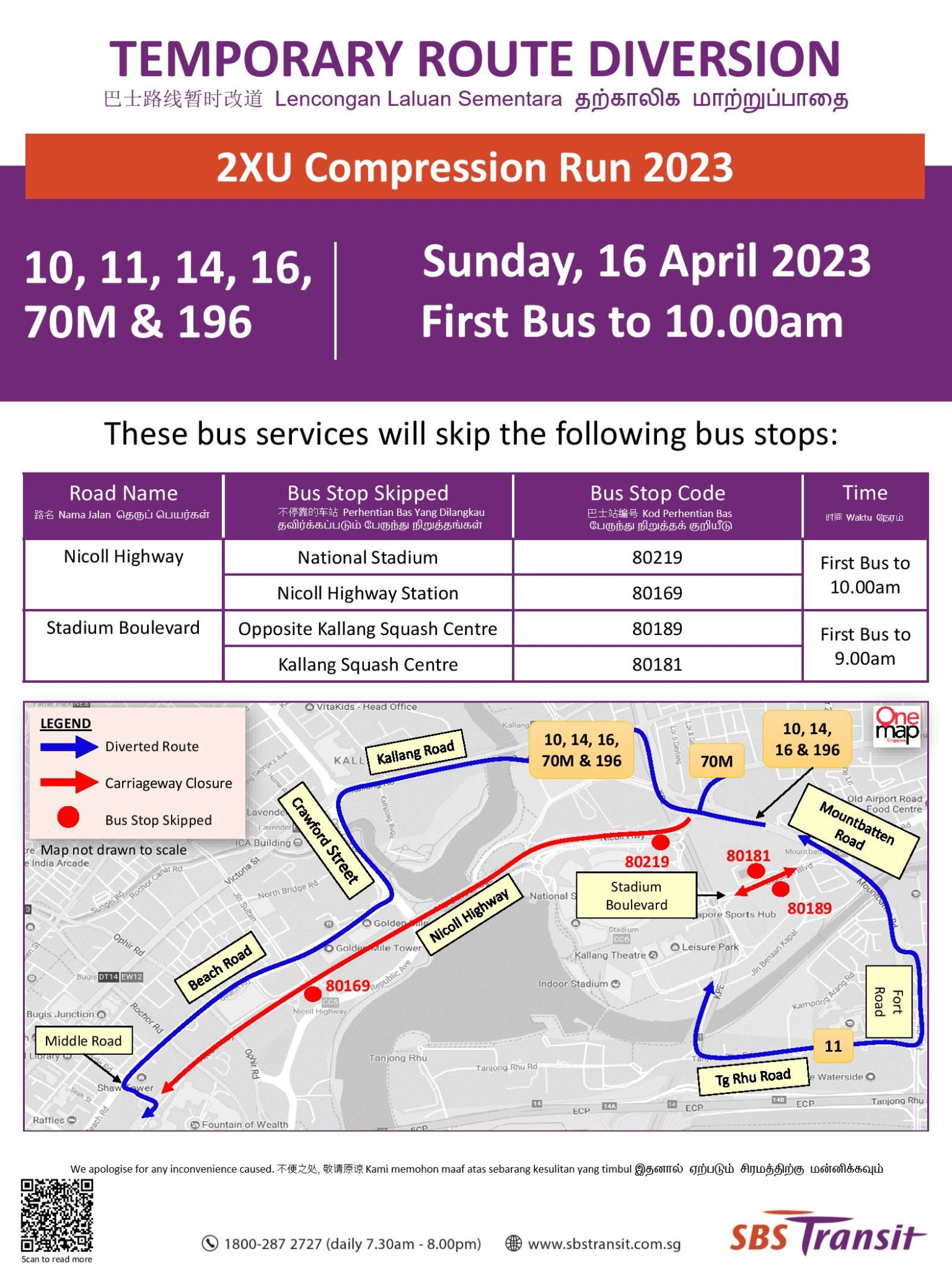 Nicoll Highway 80219 Natl Stadium First Bus – 10:00am 10, 14, 16, 70M & 196