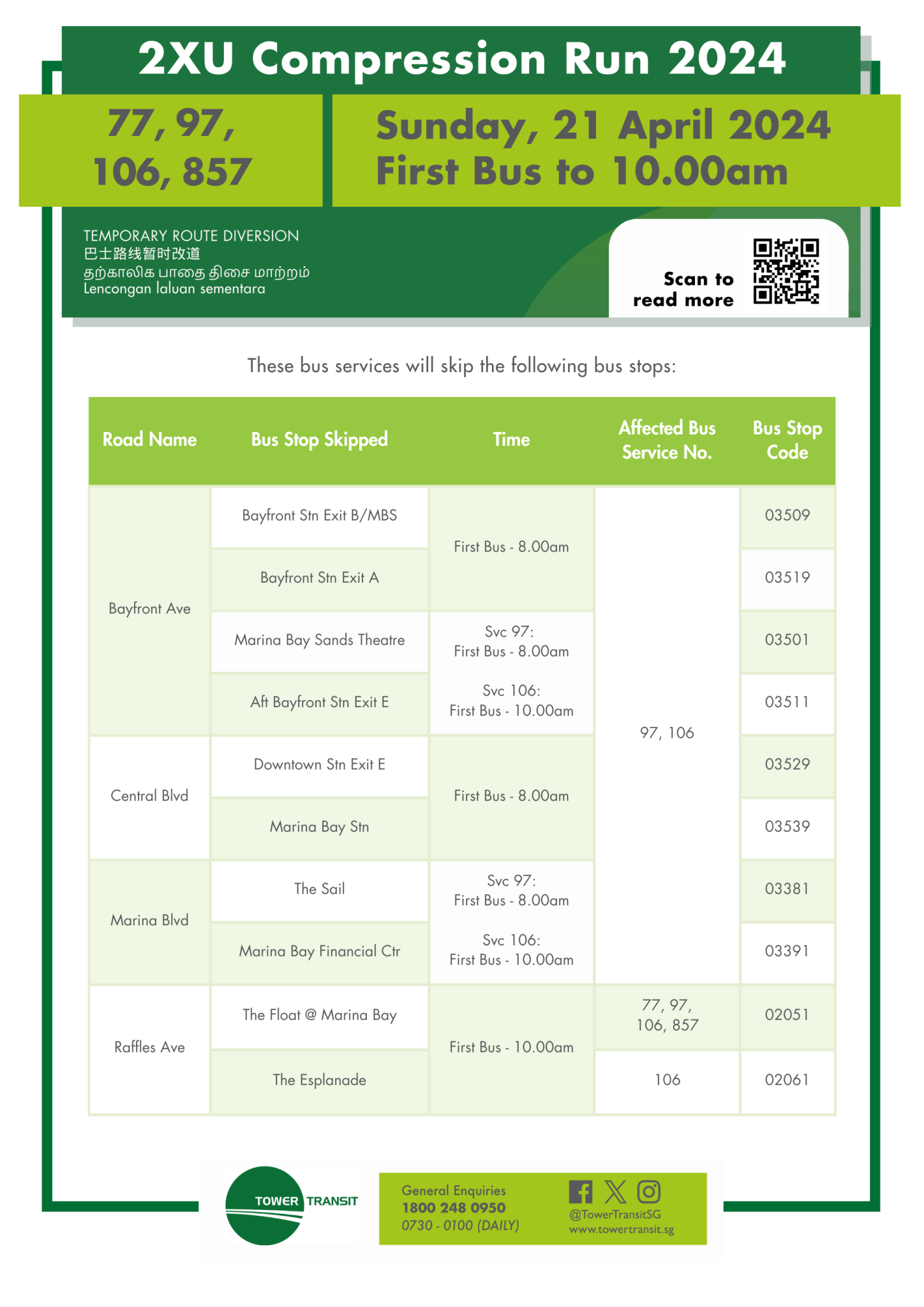 | Bus Stops Skipped for 2XU Compression Run 2024 Sunday, 21 April 2024 First Bus – 10:00am |
