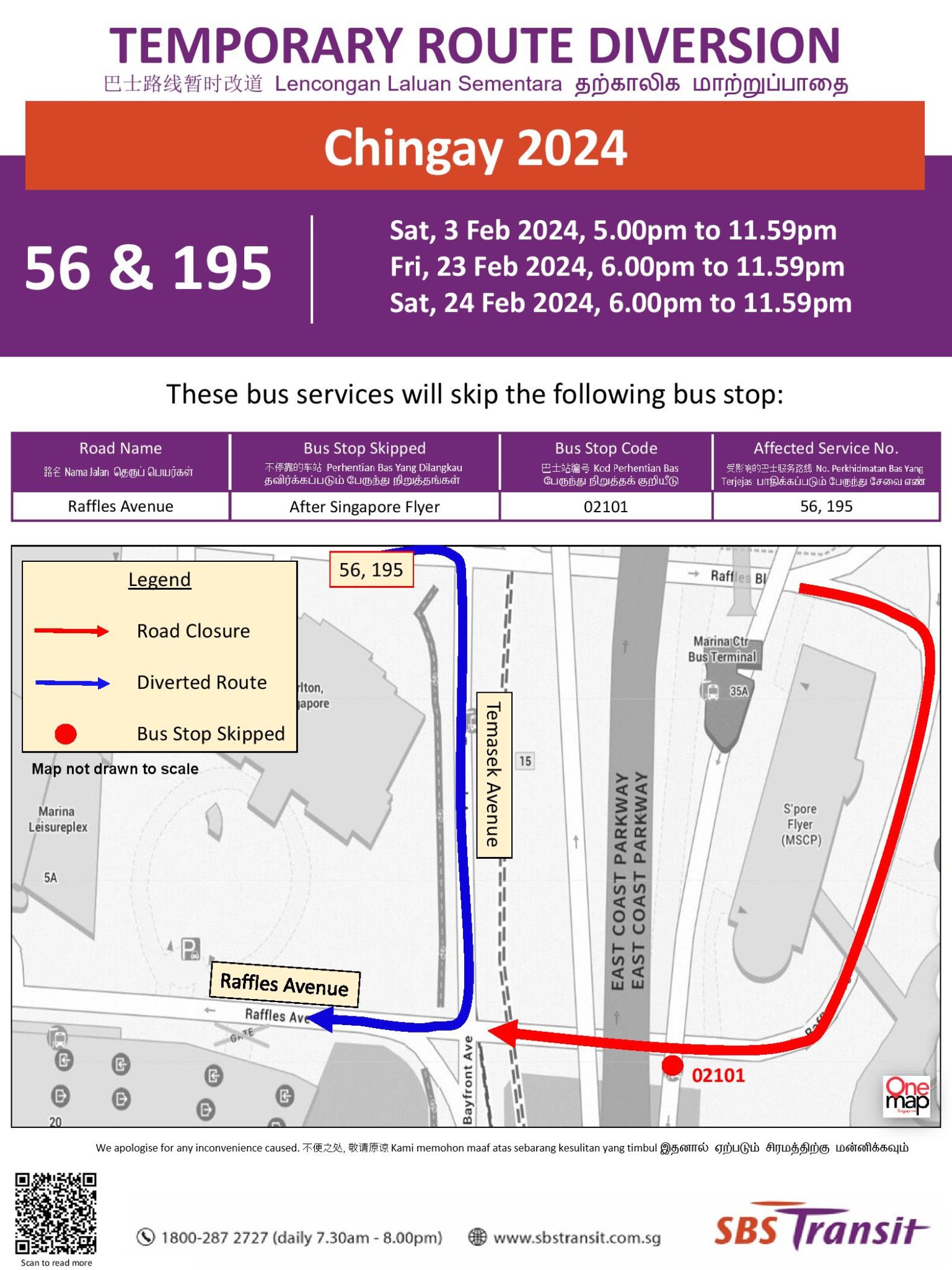 | Bus Stop Skipped for Chingay 2024 (NE Show) Saturday, 3 February 2024 5.00pm – 11.59pm |
