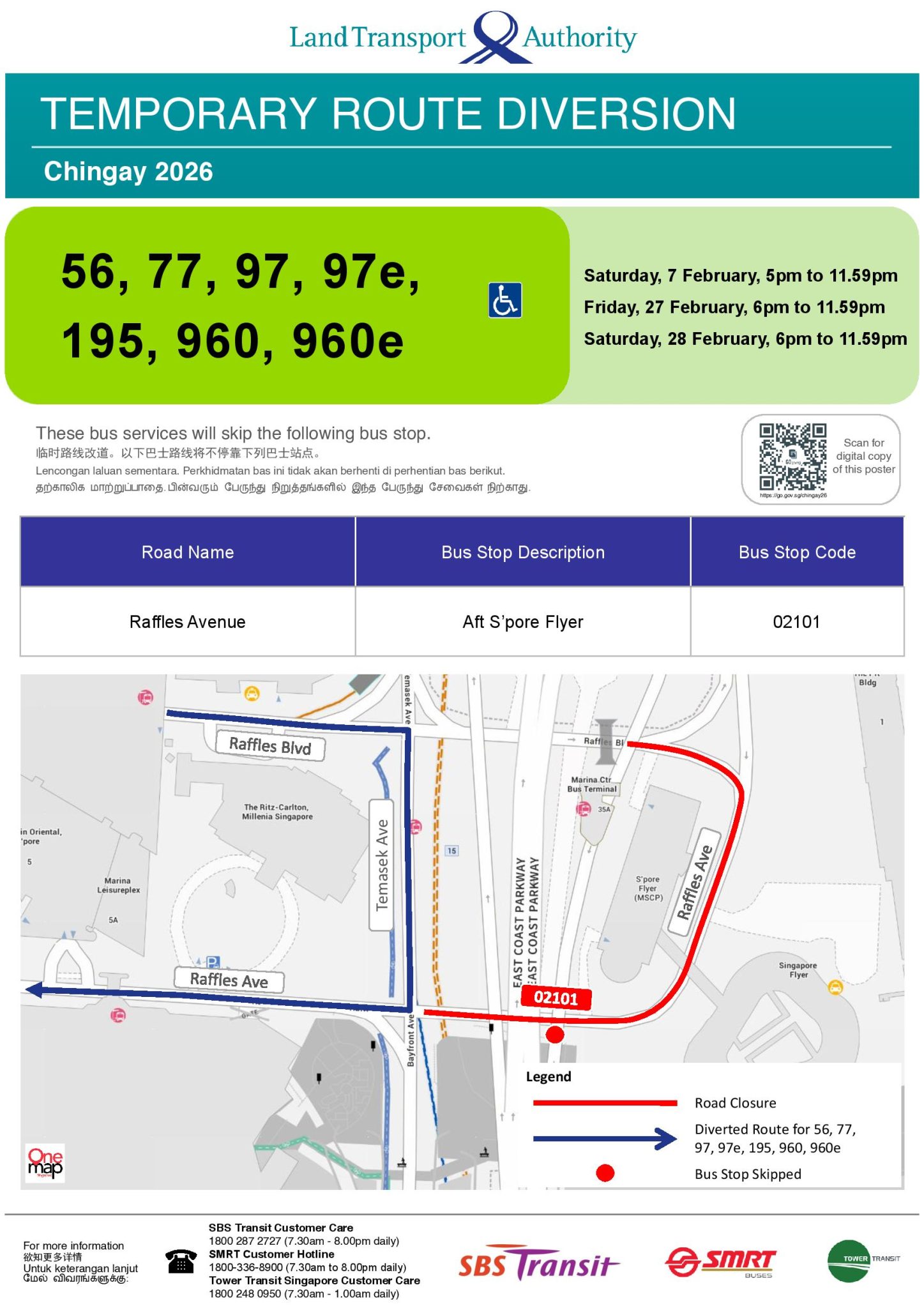 | Bus Stop Skipped for Chingay 2026 Friday, 27 February 2026 & Saturday, 28 February 2026 6.00pm – 11.59pm |