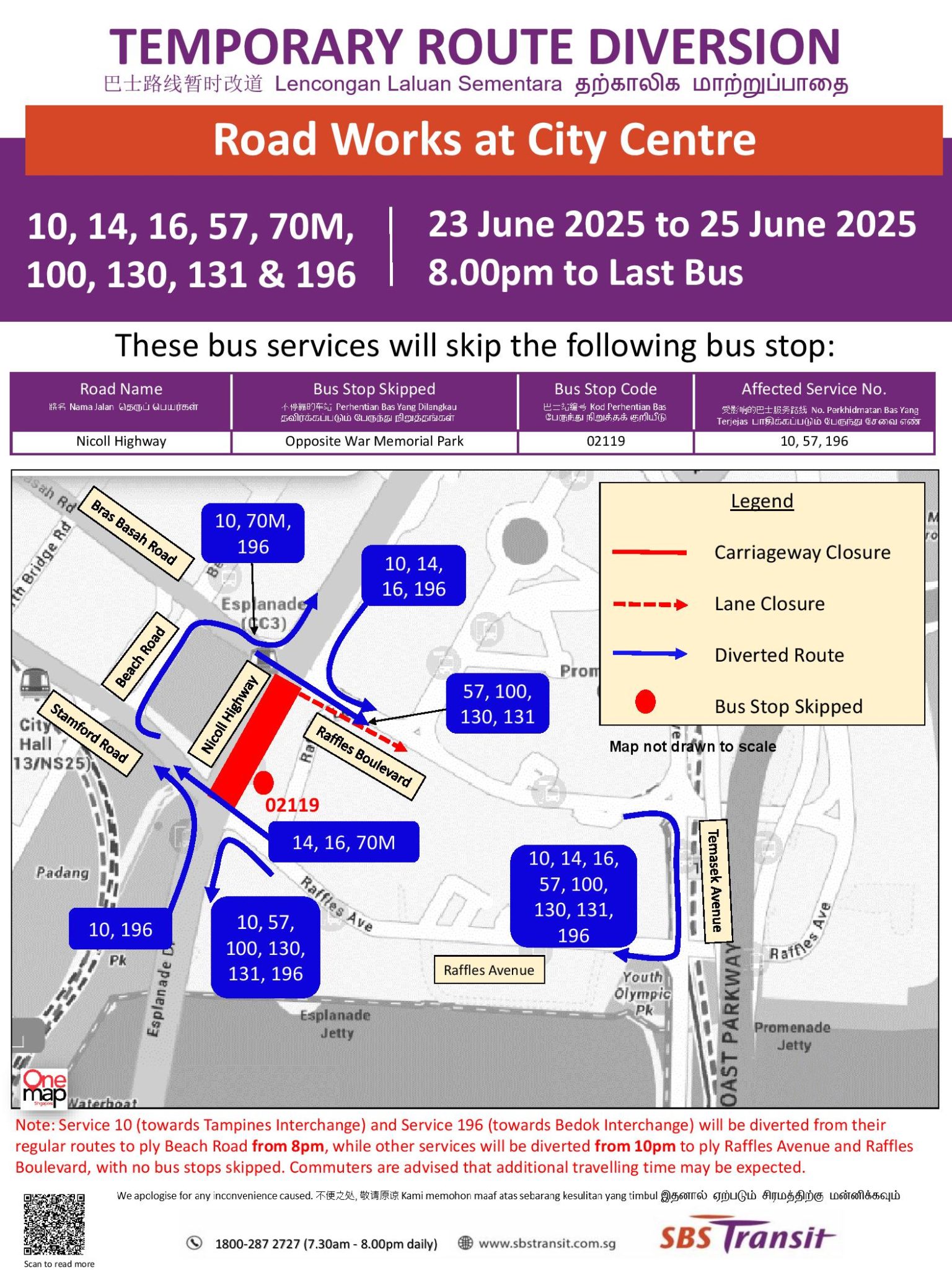 | Bus Stop Skipped for Road Works at City Centre Monday, 23 June 2025, 10:00pm – Last Bus; Tuesday, 24 June 2025, 10:00pm – Last Bus & |