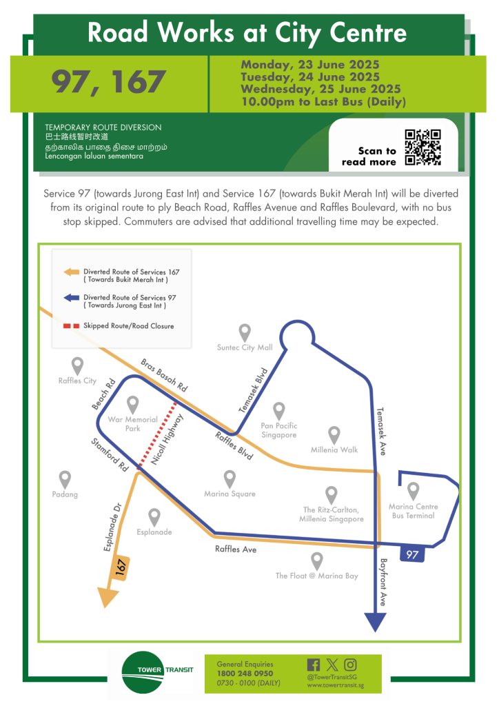 Tower Transit Temporary Route Diversion Poster for Road Words at City Centre