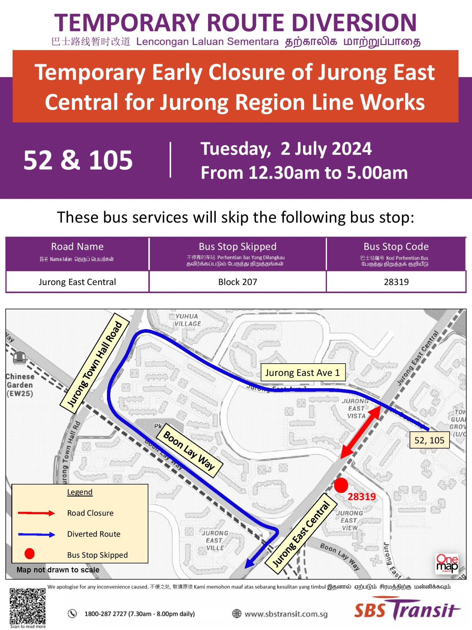 Bus Service Diversion for Early Closure of Jurong East Central for JRL Works (2 Jul)