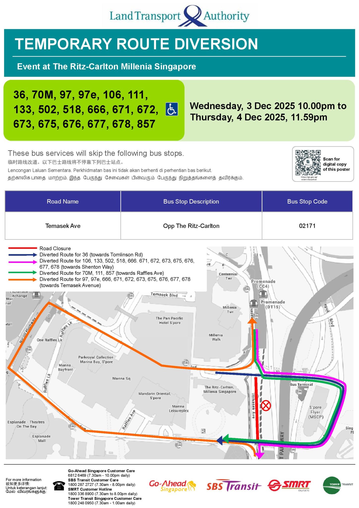 Bus Service Diversion for Event at The Ritz-Carlton Millenia Singapore (Dec 2025)
