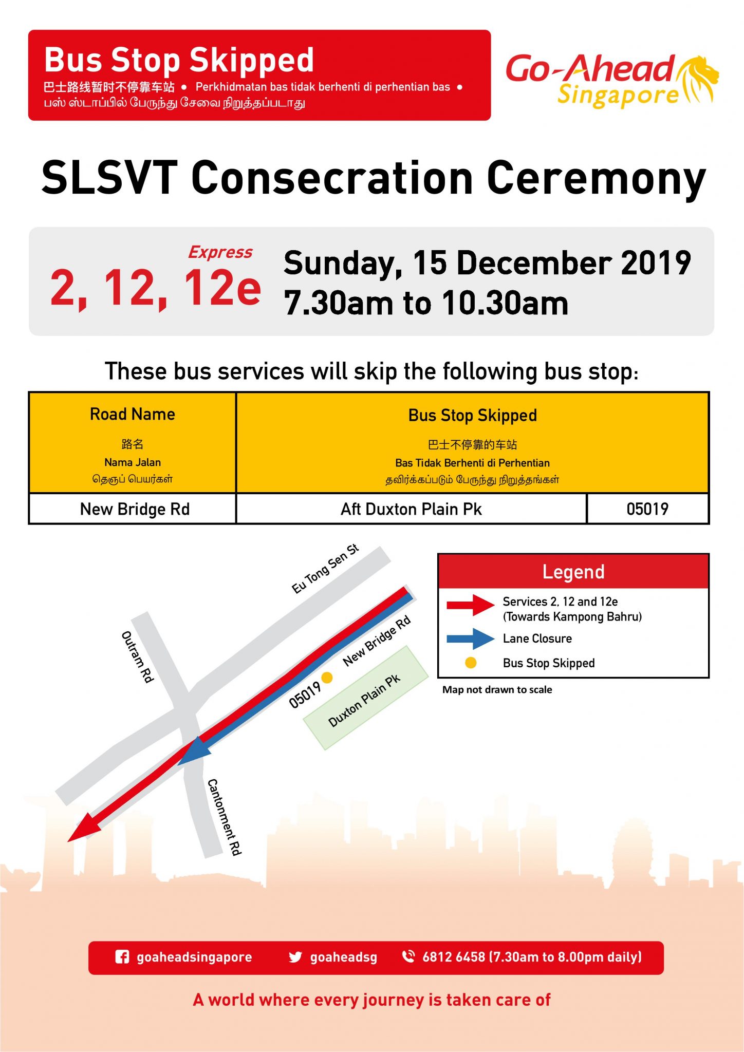 | Bus Stops Skipped for SLSVT Consecration Ceremony Saturday, 14 December 2019 7:00pm – Sunday, 15 December 2019 9:00pm |
