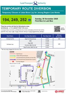| Bus Stops Skipped for Temporary Closure of Jalan Boon Lay for Jurong Region Line Works Sunday, 30 November 2025 First Bus – Last Bus |