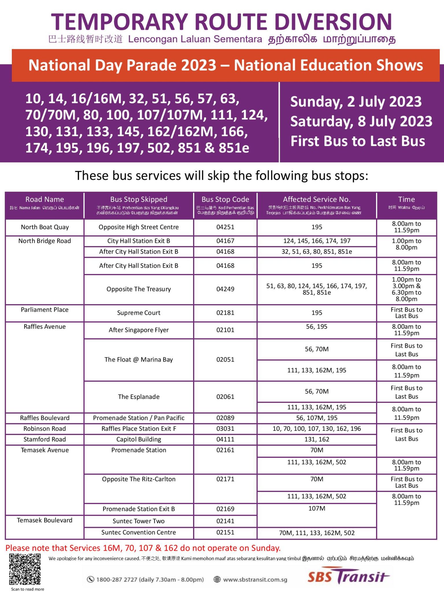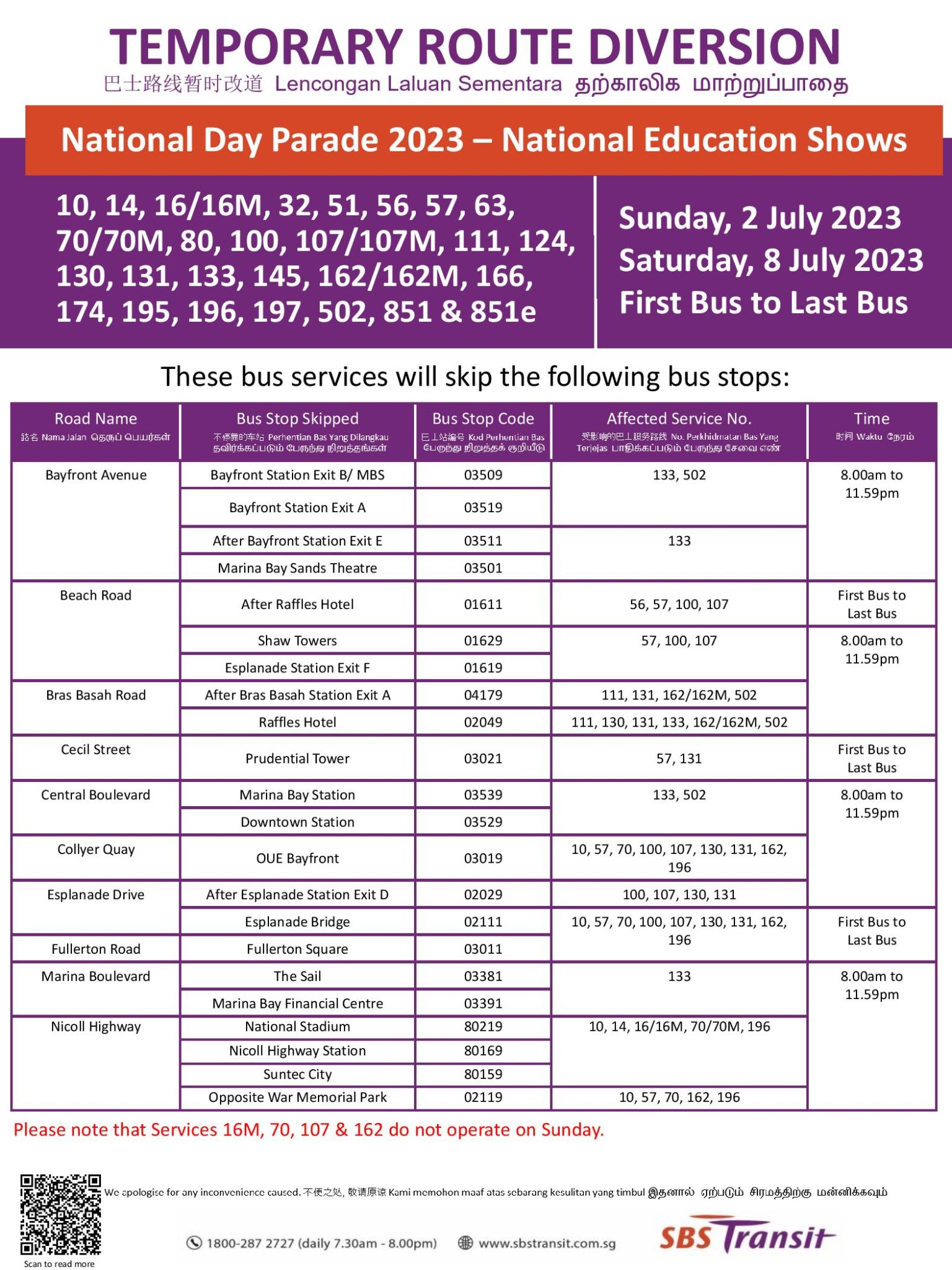 Bus Service Diversion for National Day Parade 2023 NE Show 2