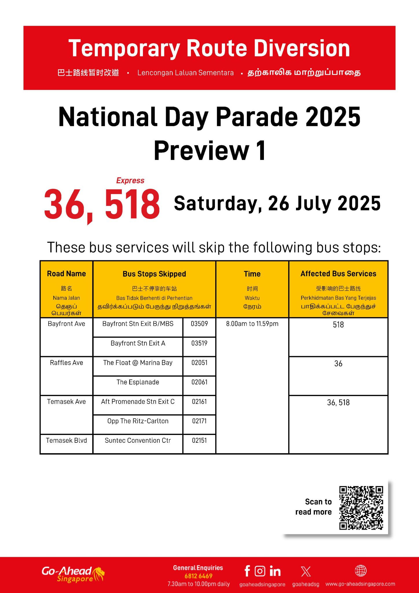 Bus Service Diversion for National Day Parade 2025 Preview 1