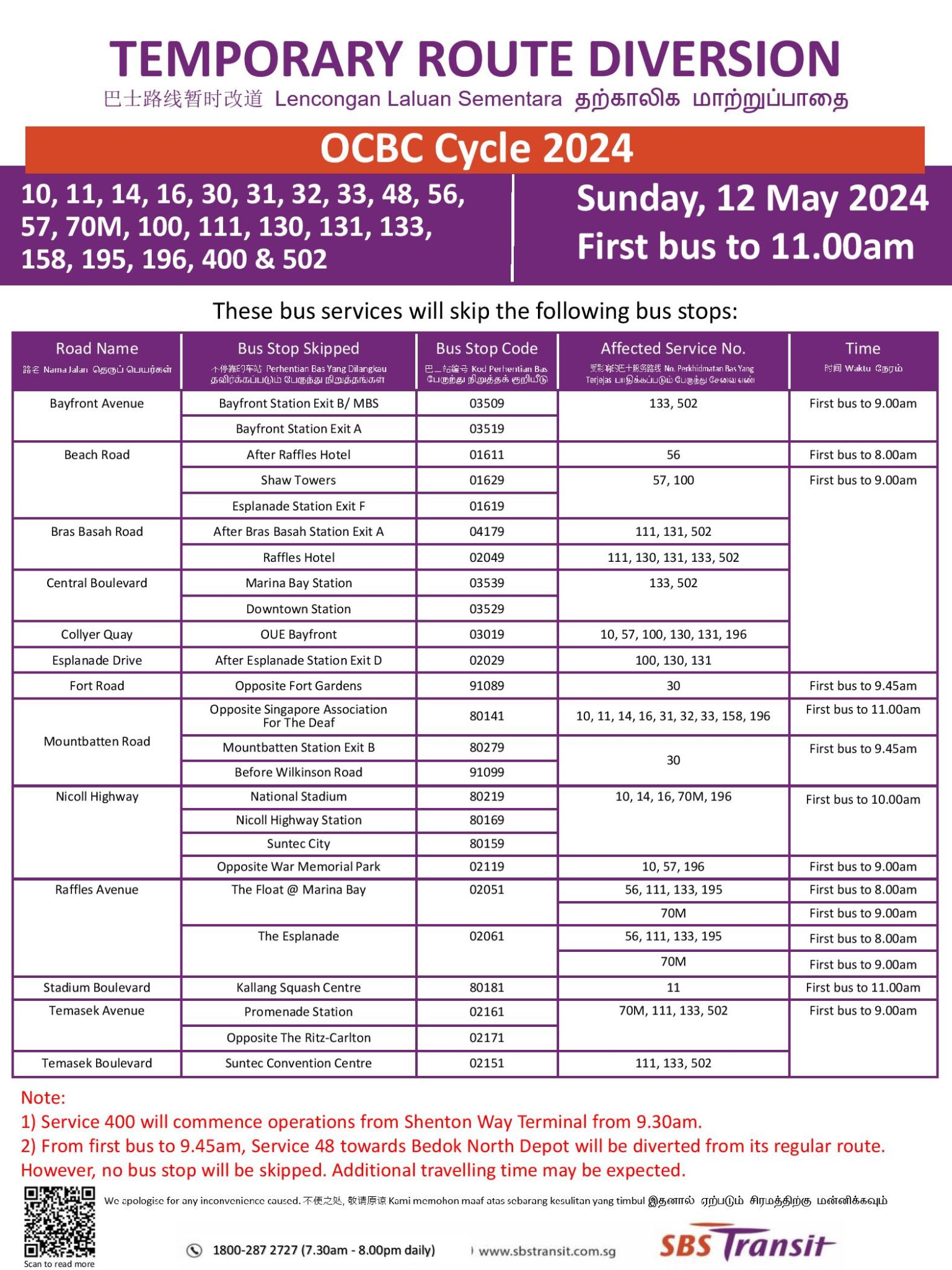 One thought on “Bus Service Diversion for OCBC Cycle 2024”