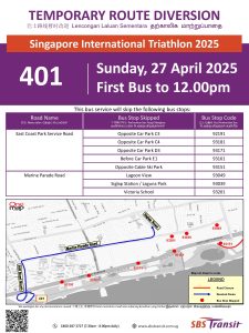 Bus Service 401 will be diverted for Singapore International Triathlon 2025.