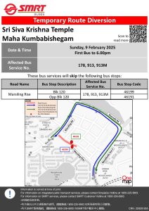 | Bus Stops Skipped for Sri Siva Krishna Temple Maha Kumbabishegam Sunday, 9 February 2025 First Bus – 6:00pm |