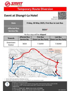 In addition, Bus Service 502A will be diverted on Friday 30 May 2025 with no bus stops skipped.