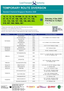Bus Service Diversion for Standard Chartered Singapore Marathon 2025 (6 Dec)