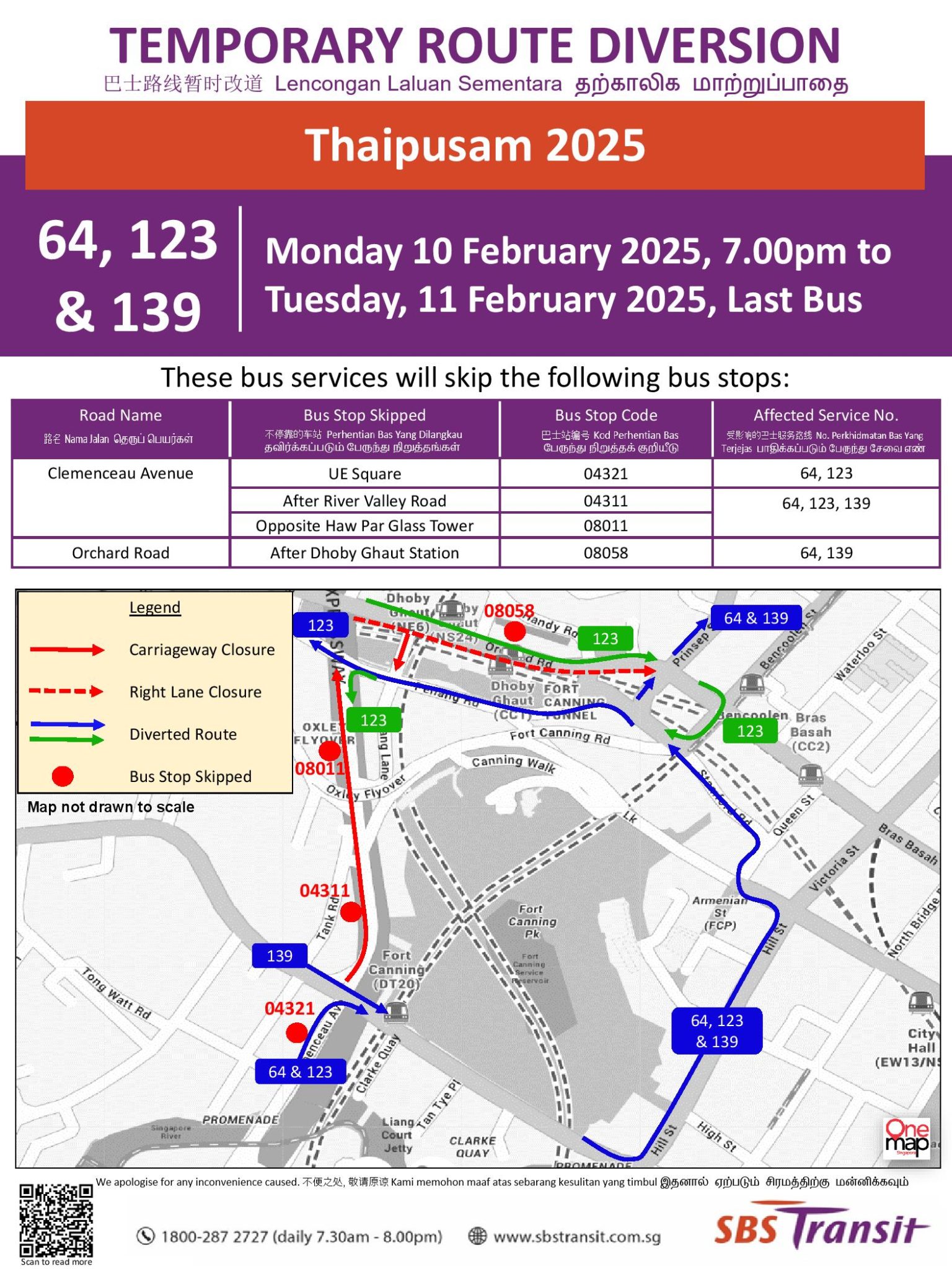 | Bus Stops Skipped for Thaipusam 2025 Monday, 10 February 2025, 7:00pm – Tuesday, 11 February 2025, Last Bus |